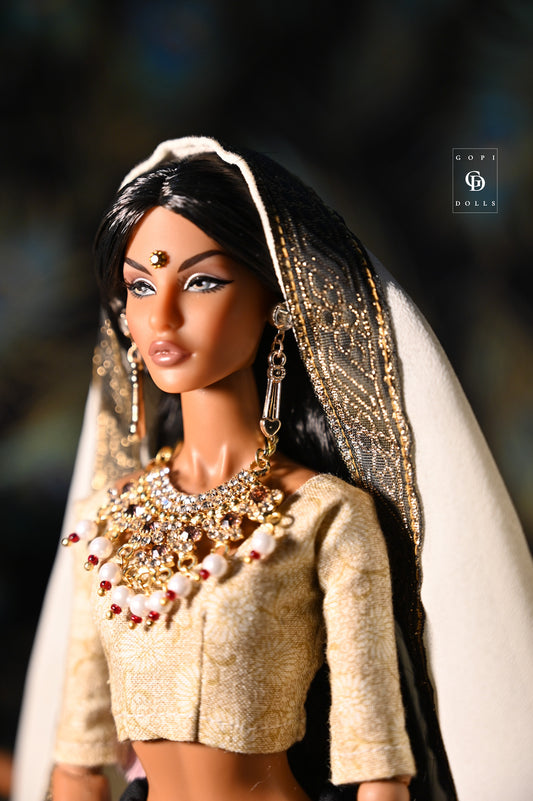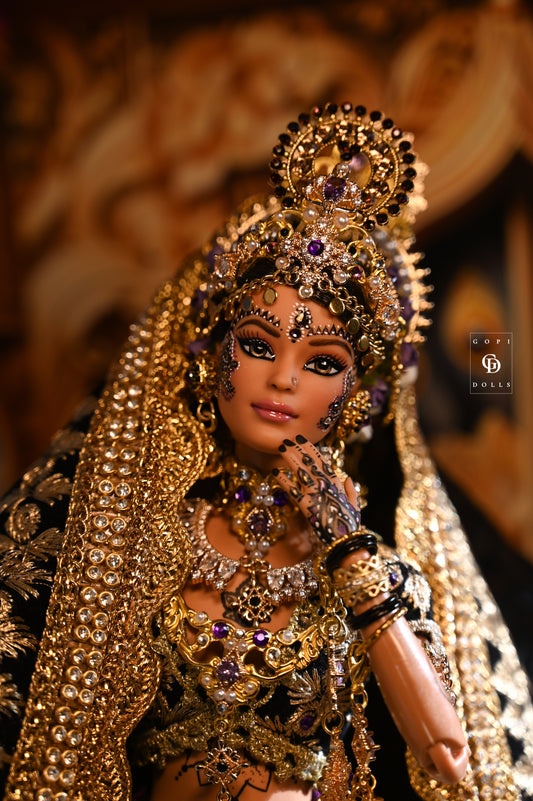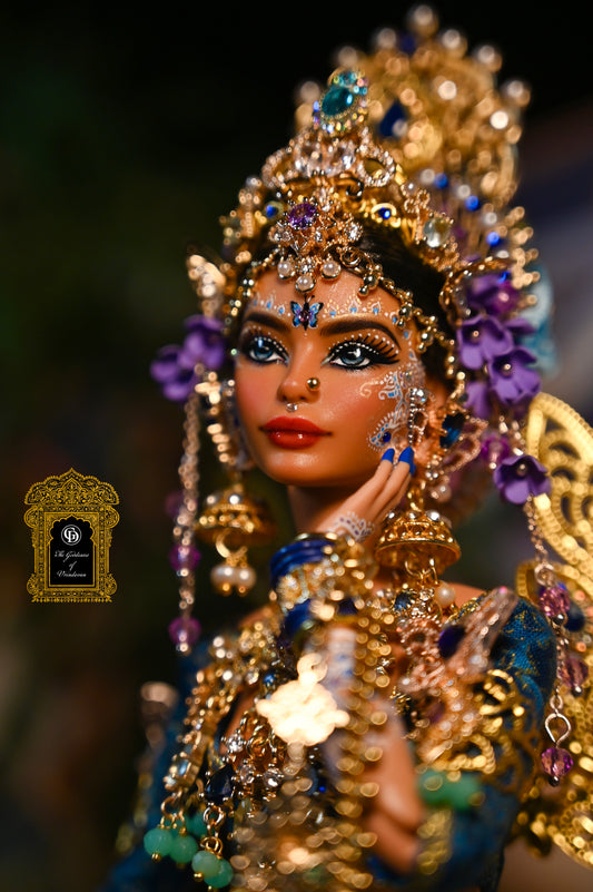 Inspired by the rich heritage and stories of ancient India, our dolls are transformed from ordinary to extraordinary, radiating a sense of awe and fascination. From the intricate clothing and exquisite jewelry to the hand-painted henna designs that adorn their faces and hands, every element is meticulously crafted to bring these Indian Goddess Queens to life.